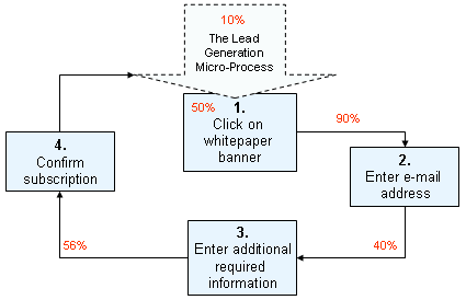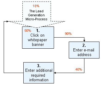 By removing the confirmation micro-action, the total conversion rate for the lead generation micro-processes jumped to 18%. This is optimization on the micro-process level. Micro-ActionThe other optimization route is optimizing the actual micro-actions that form the micro-process, for example optimizing the whitepaper banner in such a way that a higher % of first-time visitors take notice of it and click on it. At the same time, we optimize the field for entering additional information, perhaps removing some required fields to make things easier for our visitors.